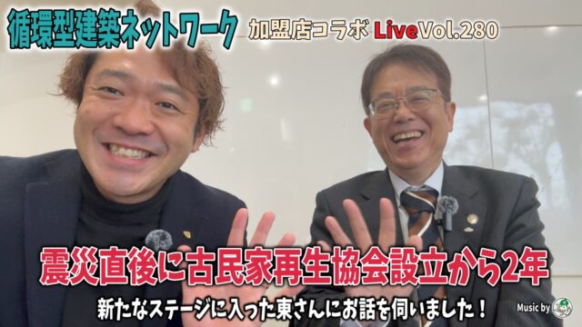 今週の循環型建築ネットワーク加盟店コラボライブは280話目。
