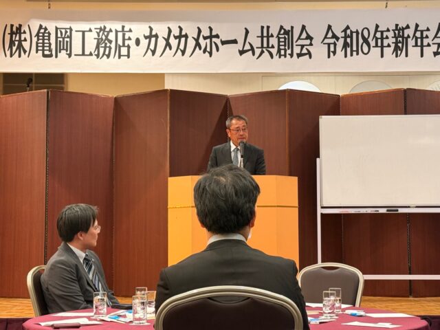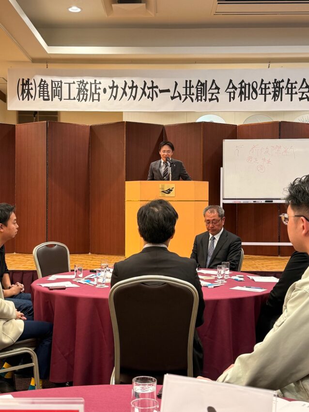 東北巡業最終日は、福島にてサスティナブルなまちづくりプランナー講習(午前)、伝統再築士講習(午後)そして、加盟店である亀岡さんの会社(亀岡工務店)の新年会(夜)へ。